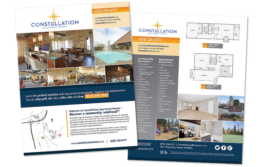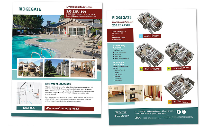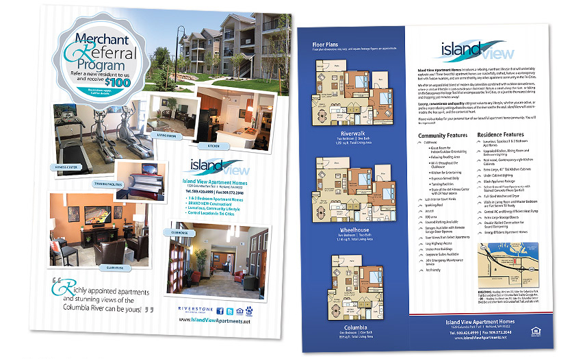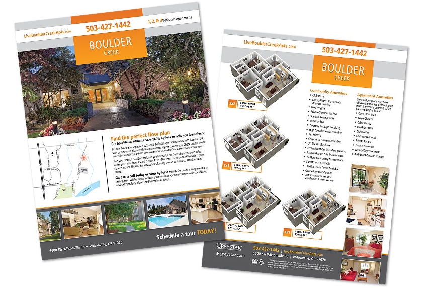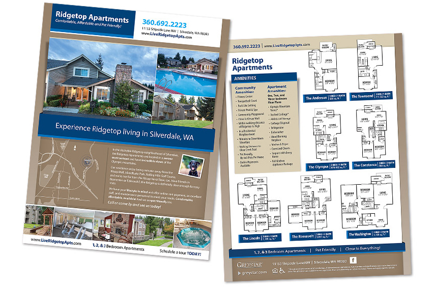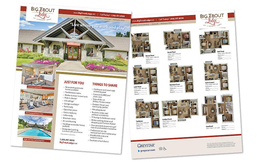 Two-Sided Fliers Mark on 8th Sales Flier Big Trout Lodge Sales Flier Boulder Creek Sales Flier Ridgetop Apts. Sales Flier Ridgegate Sales Flier Constellation Sales Flier Island View Referral Program Flier